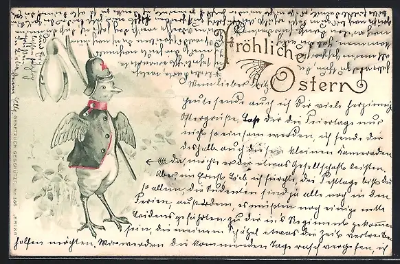 AK Vermenschlichtes Osterküken als Soldat in Uniform