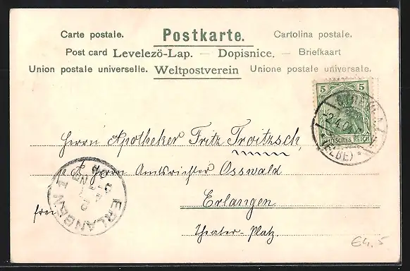 alte Ansichtskarte, gelaufen 1901, guter Zustand