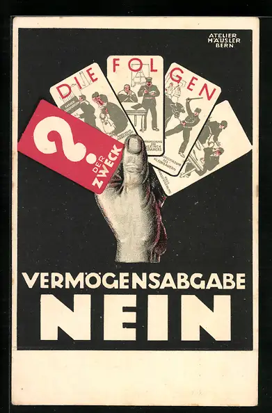 AK Vermögensabgabe Nein, Hand mit Karten Die Folgen, Arbeiterbewegung