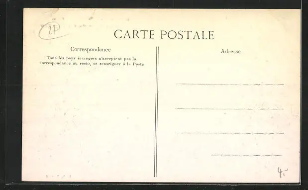 Personenbezogene Daten auf der Rückseite der Karte wurden durch blauen Textmarker unkenntlich gemacht. Die blauen Stellen sind auf die Vorderseite durchgeweicht und wirken sich negativ auf das Postkartenfoto aus
