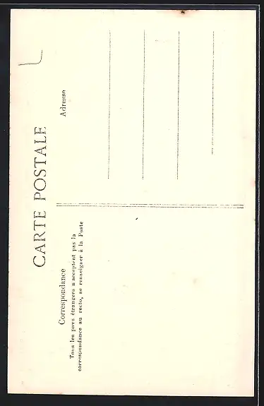 Personenbezogene Daten auf der Rückseite der Karte wurden durch blauen Textmarker unkenntlich gemacht. Die blauen Stellen sind auf die Vorderseite durchgeweicht und wirken sich negativ auf das Postkartenfoto aus