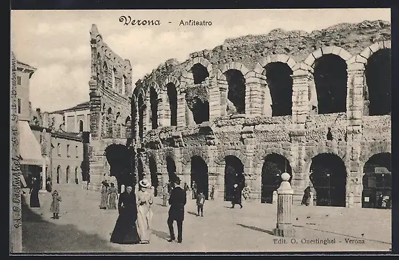 AK Verona, L`Anfiteatro, Teilansicht mit Passanten