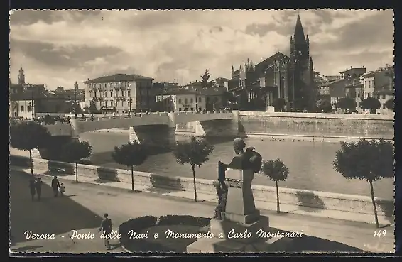 AK Verona, Ponte delle Navi e Monumento a Carlo Montanari