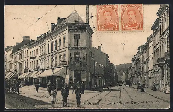 AK Verviers, Coins des rues David et Tranchée, Cafe de la Poste