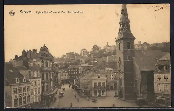AK Verviers, Eglise Notre-Dame et Pont des Récollets