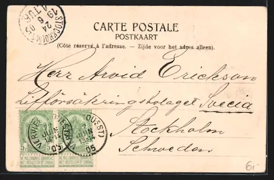 alte Ansichtskarte, gelaufen 1905, Eckknick re. oben, guter Zustand