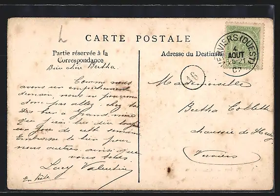 alte Ansichtskarte, gelaufen 1907, Eckknick re. unten, guter Zustand
