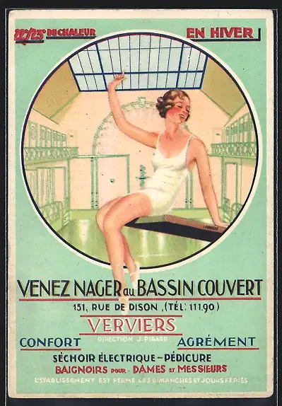 AK Verviers, Venez Nager au Bassin Couvert, 151 Rue de Dison