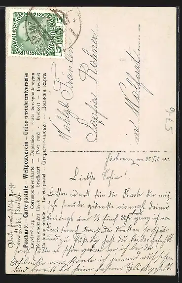 alte Ansichtskarte, gelaufen 1911, guter Zustand