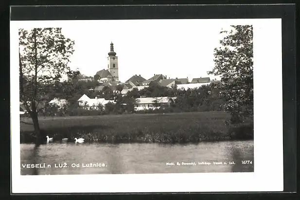 AK Veselí n. Luz., Ortsansicht mit Kirche