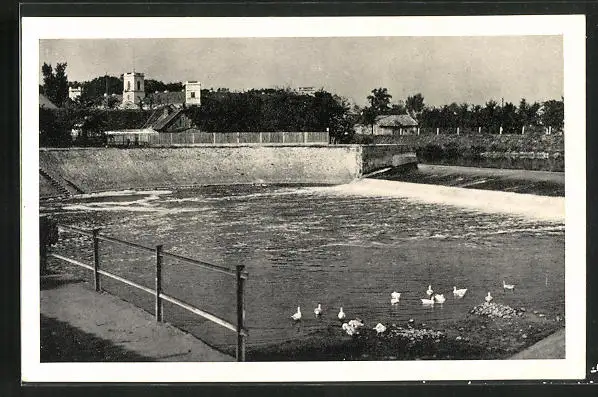 AK Veseli n. Mor., Flusspartie mit Schwänen