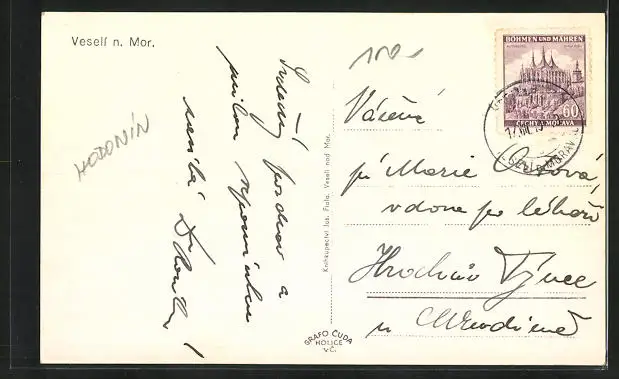 AK Veseli n. Mor., Strassenpartie am Waldrand
