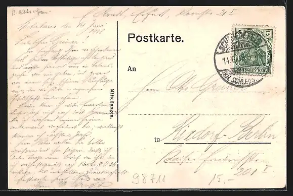 alte Ansichtskarte, gelaufen 1908, guter Zustand