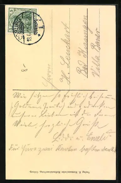 alte Ansichtskarte, gelaufen 1911, Eckknick li. unten, guter Zustand