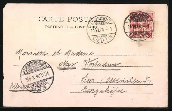 gelaufen 1904, Stempelspur, kleiner Eckschaden rechts oben, kleiner Randschaden rechts unten, guter Zustand