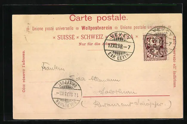 alte Ansichtskarte, gelaufen 1898, guter Zustand