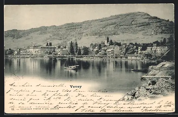 AK Vevey, Uferpartie mit Blick auf die Ortschaft