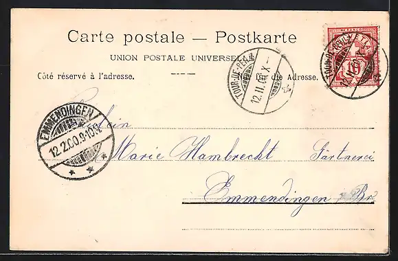 alte Ansichtskarte, gelaufen 1900, Stempelspur, guter Zustand