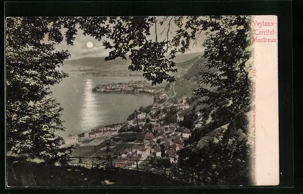 AK Veytaux-Territet-Montreux, Teilansicht bei Mondschein