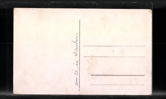 Personenbezogene Daten auf der Rückseite der Karte wurden durch blauen Textmarker unkenntlich gemacht. Die blauen Stellen sind auf die Vorderseite durchgeweicht und wirken sich negativ auf das Postkartenfoto aus