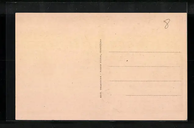 Personenbezogene Daten auf der Rückseite der Karte wurden durch blauen Textmarker unkenntlich gemacht. Die blauen Stellen sind auf die Vorderseite durchgeweicht und wirken sich negativ auf das Postkartenfoto aus