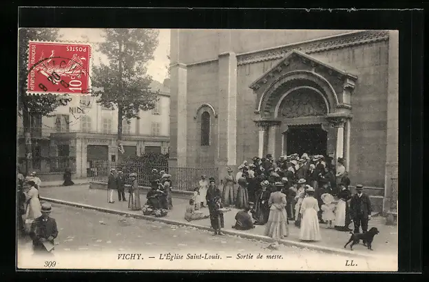 AK Vichy, L`Église Saint-Louis, Sortie de messe