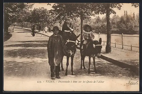 AK Vichy, Promenade à ânes sur les Quais de l`Allier