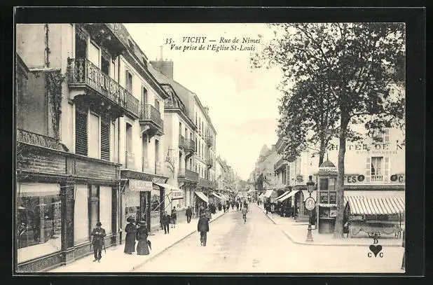 AK Vichy, Rue de Nimes, vue prise de l'Eglise Saint-Louis