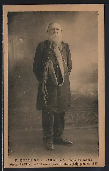 AK Victor Preux aus Wasmes mit 2 m langem Bart
