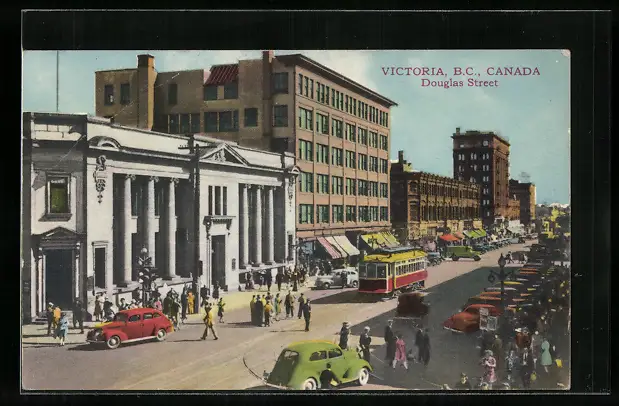 AK Victoria, B.C., Douglas Street, Strassenbahn