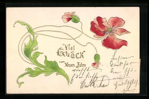 AK Viel Glück zum neuen Jahr, Blüte zu Neujahr