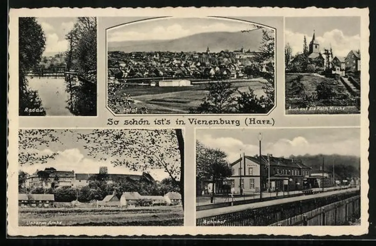 AK Vienenburg, Bahnhof, Radau, Kath. Kirche, Panorama