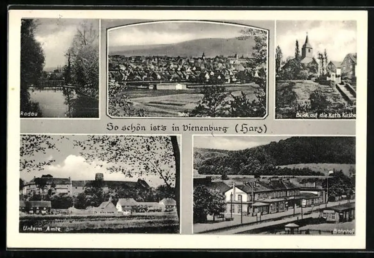 AK Vienenburg /Harz, Totalansicht des Ortes, Bahnhof