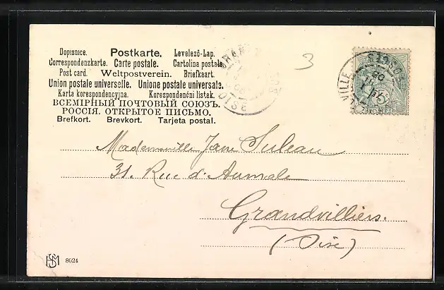 gelaufen 1905, Eckknick re. unten, guter Zustand