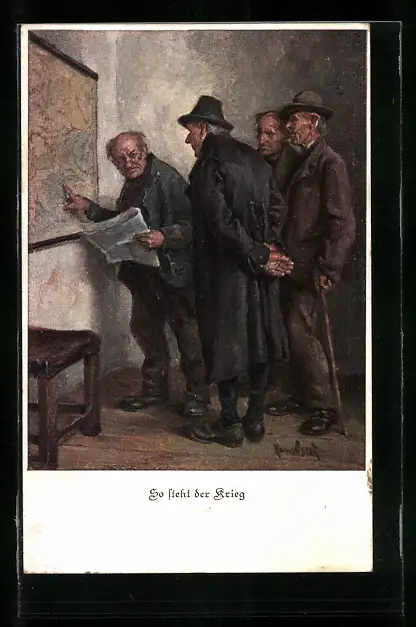 AK Vier Männer vor einer Landkarte, Propaganda 1. Weltkrieg