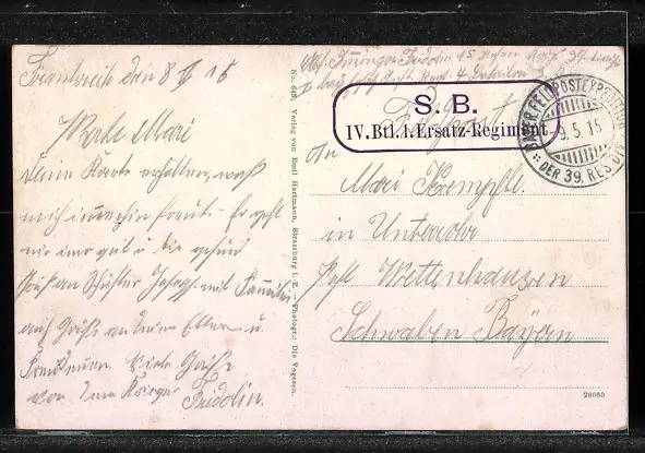 alte Ansichtskarte, gelaufen 1915 als Feldpost, guter Zustand