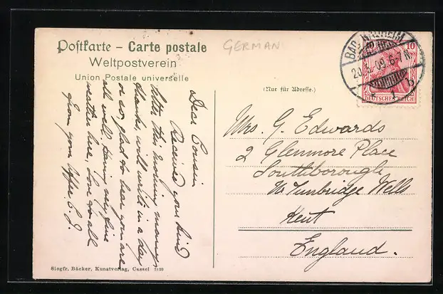 alte Ansichtskarte, gelaufen 1909, guter Zustand