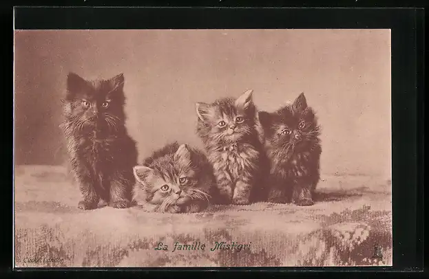 AK Vier kleine Katzen sitzen auf dem Tisch