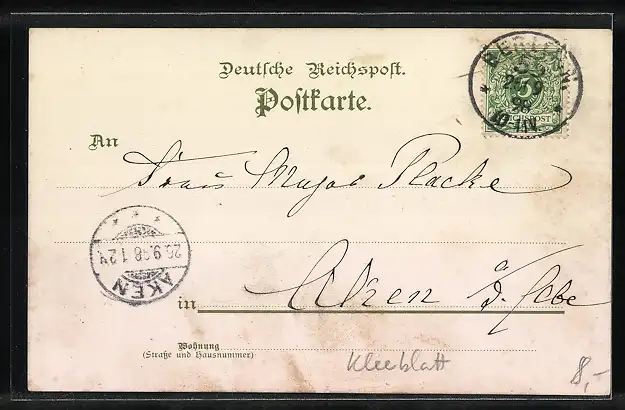 alte Ansichtskarte, gelaufen 1898, guter Zustand