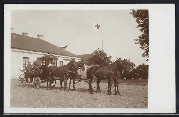 AK Vierer-Pferdegespann mit Soldaten