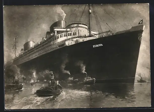 AK Vierschrauben-Turbinen-Schnelldampfer D. Europa mit , Beiboote