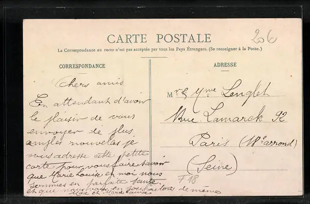 Personenbezogene Daten auf der Rückseite der Karte wurden durch blauen Textmarker unkenntlich gemacht. Die blauen Stellen sind auf die Vorderseite durchgeweicht und wirken sich negativ auf das Postkartenfoto aus