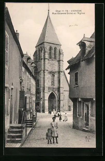 AK Vierzon, Rue Etienne Dolet et l`Eglise