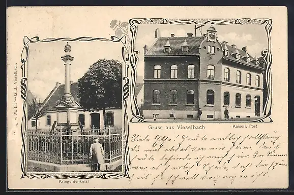 AK Vieselbach, Kriegerdenkmal, Kaiserl. Post
