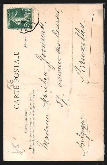 Personenbezogene Daten auf der Rückseite der Karte wurden durch blauen Textmarker unkenntlich gemacht. Die blauen Stellen sind auf die Vorderseite durchgeweicht und wirken sich negativ auf das Postkartenfoto aus