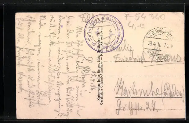 alte Ansichtskarte, gelaufen 1916 als Feldpost, Eckknicke oben, guter Zustand