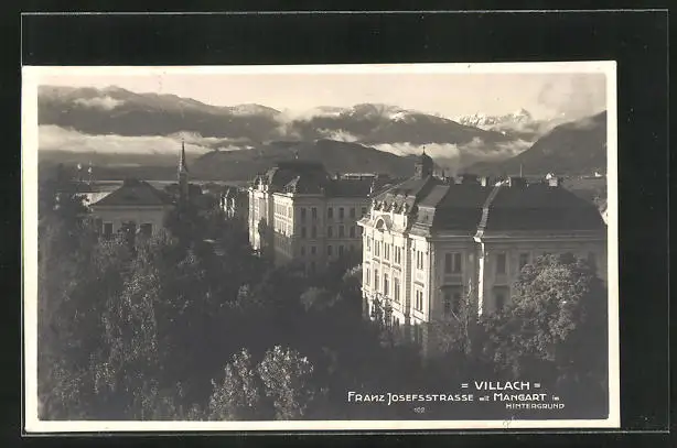 AK Villach, Franz-Josefs-Strasse mit Mangart im Hintergrund