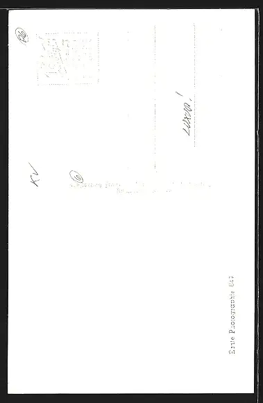 Personenbezogene Daten auf der Rückseite der Karte wurden durch blauen Textmarker unkenntlich gemacht. Die blauen Stellen sind auf die Vorderseite durchgeweicht und wirken sich negativ auf das Postkartenfoto aus