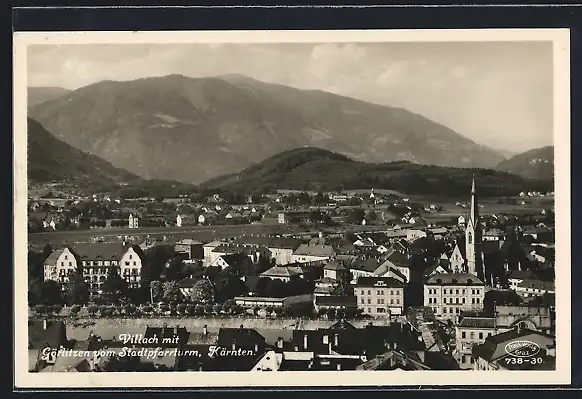 AK Villach /Kärnten, Ansicht mit Görlitzen vom Stadtpfarrturm
