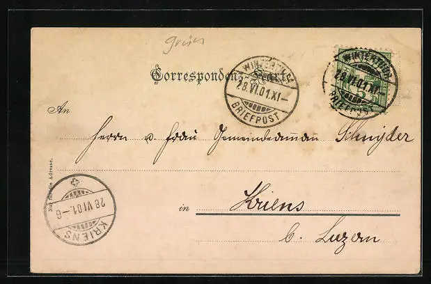 alte Ansichtskarte, gelaufen 1901, guter Zustand